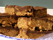 Melt together the chocolate and butterscotch chips and smooth over the cereal.